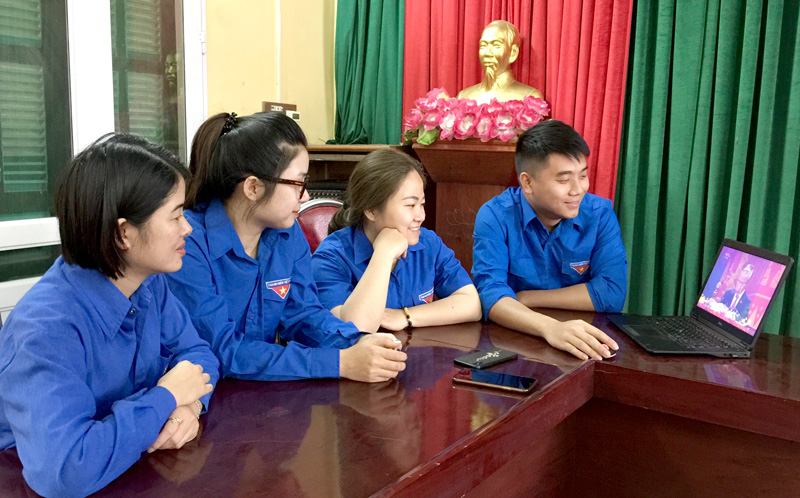 Đoàn thanh niên phường Minh Xuân (TP Tuyên Quang) theo dõi Đại hội qua mạng xã hội.