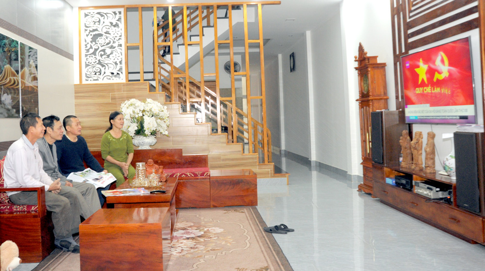 Người dân thôn Bó Củng, xã Kim Bình (Chiêm Hóa) theo dõi trực tiếp