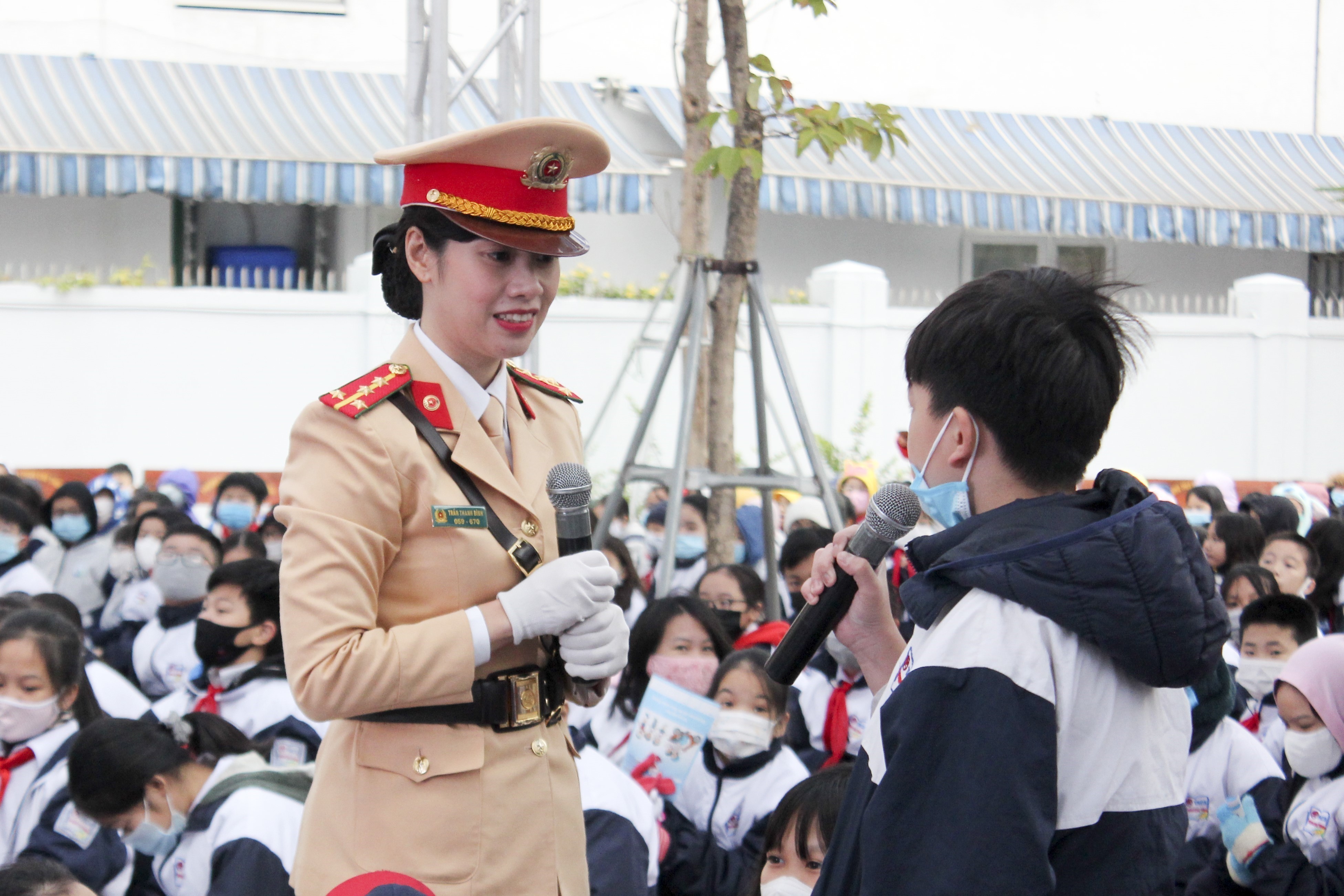 Giáo dục pháp luật để văn hóa thượng tôn Hiến pháp, pháp luật thẩm thấu đến mọi tầng lớp nhân dân là yếu tố quan trọng giúp xây dựng thành công Nhà nước pháp quyền xã hội chủ nghĩa (Trong ảnh: Học sinh Trường Trung học cơ sở Phan Chu Trinh (quận Ba Đình, Hà Nội) giao lưu tìm hiểu Luật Giao thông đường bộ)_Ảnh: TTXVN