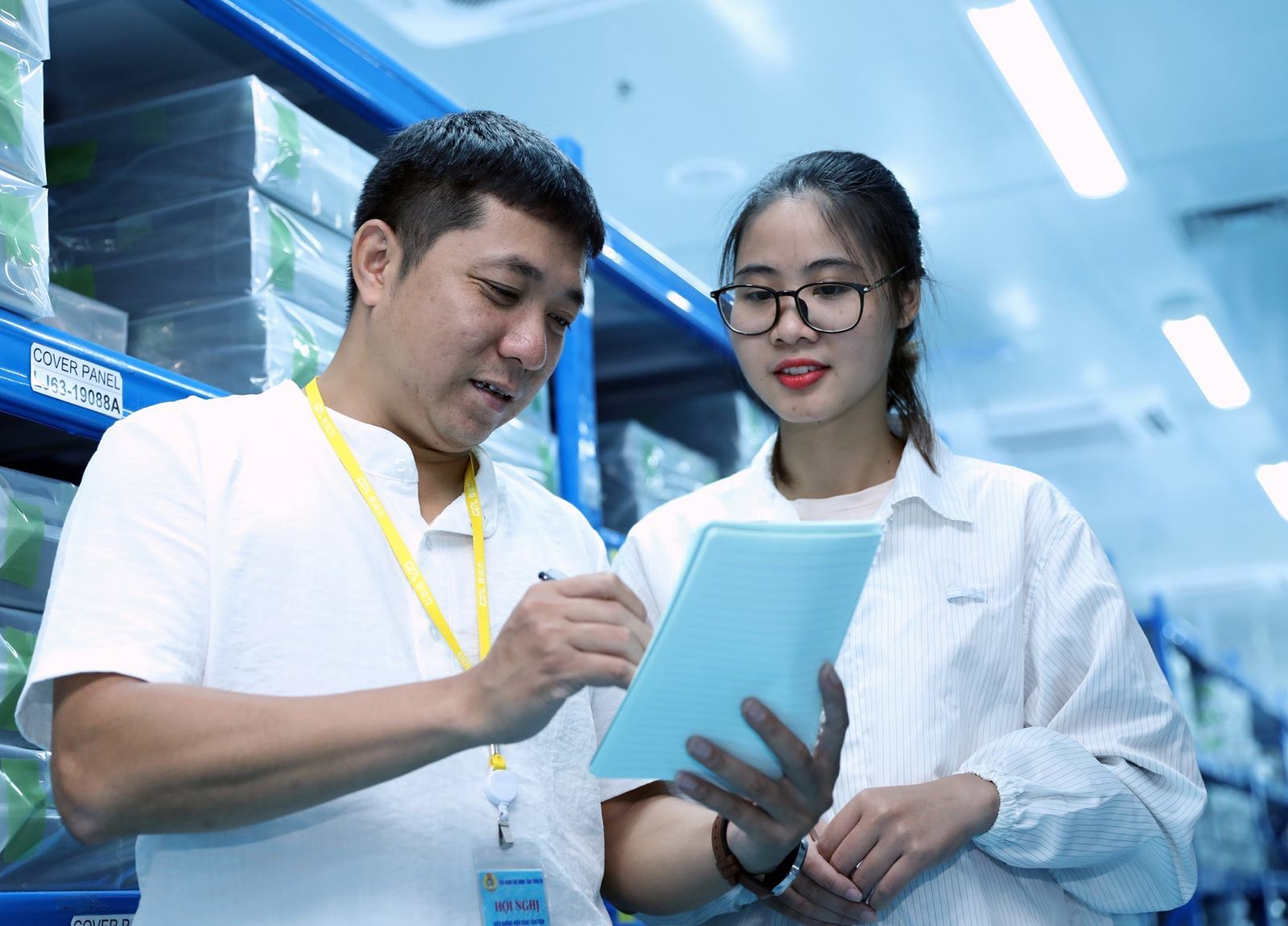 Đảng ta luôn quan tâm xây dựng các tổ chức đảng trong doanh nghiệp tư nhân thành hạt nhân chính trị lãnh đạo đảng viên, người lao động (Trong ảnh: Đồng chí Lê Văn Trường, Chủ tịch Công đoàn Công ty TNHH CDL Precision Technology Việt Nam, đảng viên Chi bộ cơ sở Công đoàn khu công nghiệp tỉnh Vĩnh Phúc hướng dẫn công tác đoàn thể cho đoàn viên công đoàn trong khu công nghiệp)_Ảnh: TTXVN