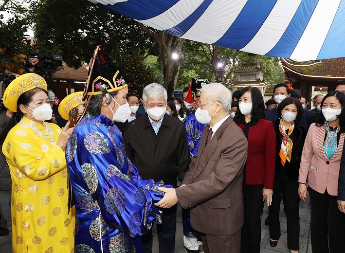 Tổng Bí thư Nguyễn Phú Trọng với nhân dân tại Di tích lịch sử - văn hóa Đền Đô (phường Đình Bảng, thành phố Từ Sơn, tỉnh Bắc Ninh_Ảnh: TTXVN