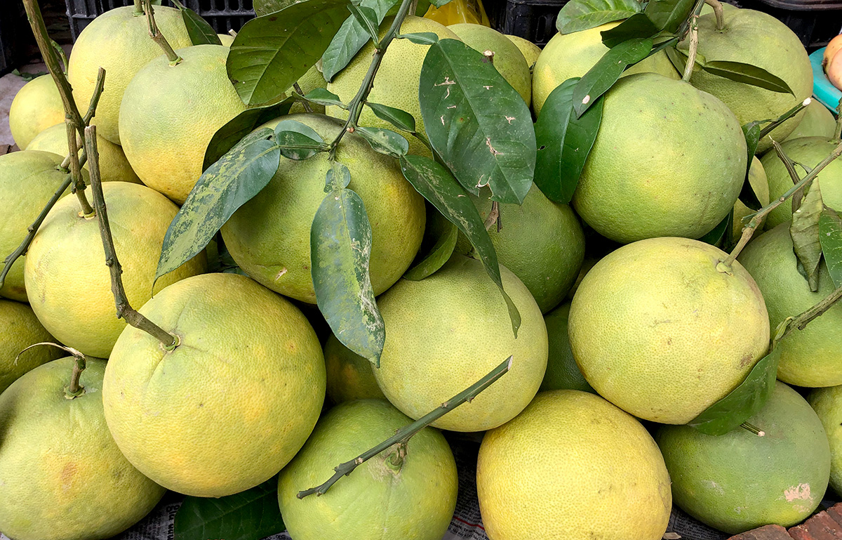 Bưởi Soi Hà, xã Xuân Vân (Yên Sơn) đã bày bán nhiều tại các chợ.