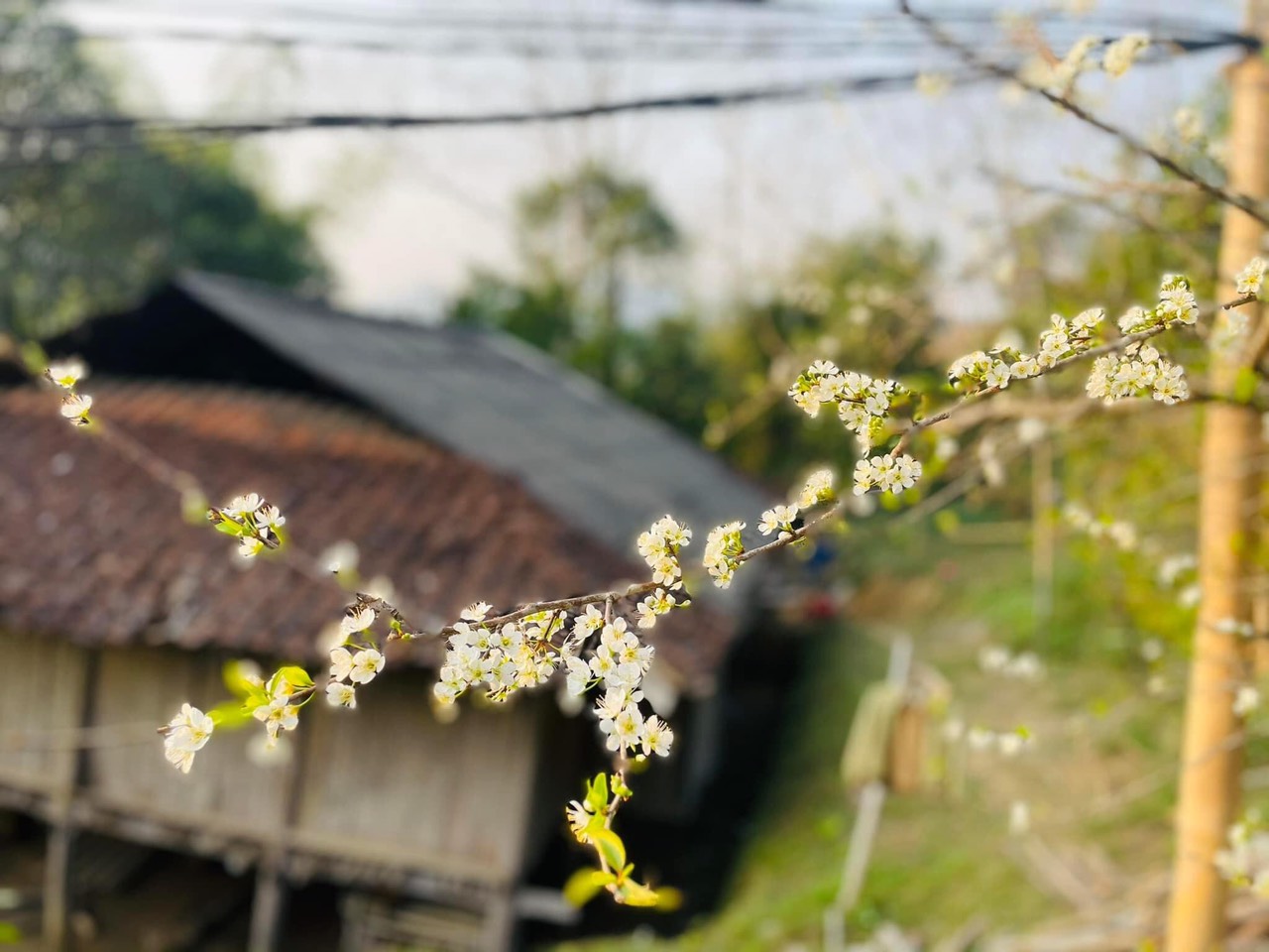 Hoa mận bung nở ven đường, trên các triền đồi...