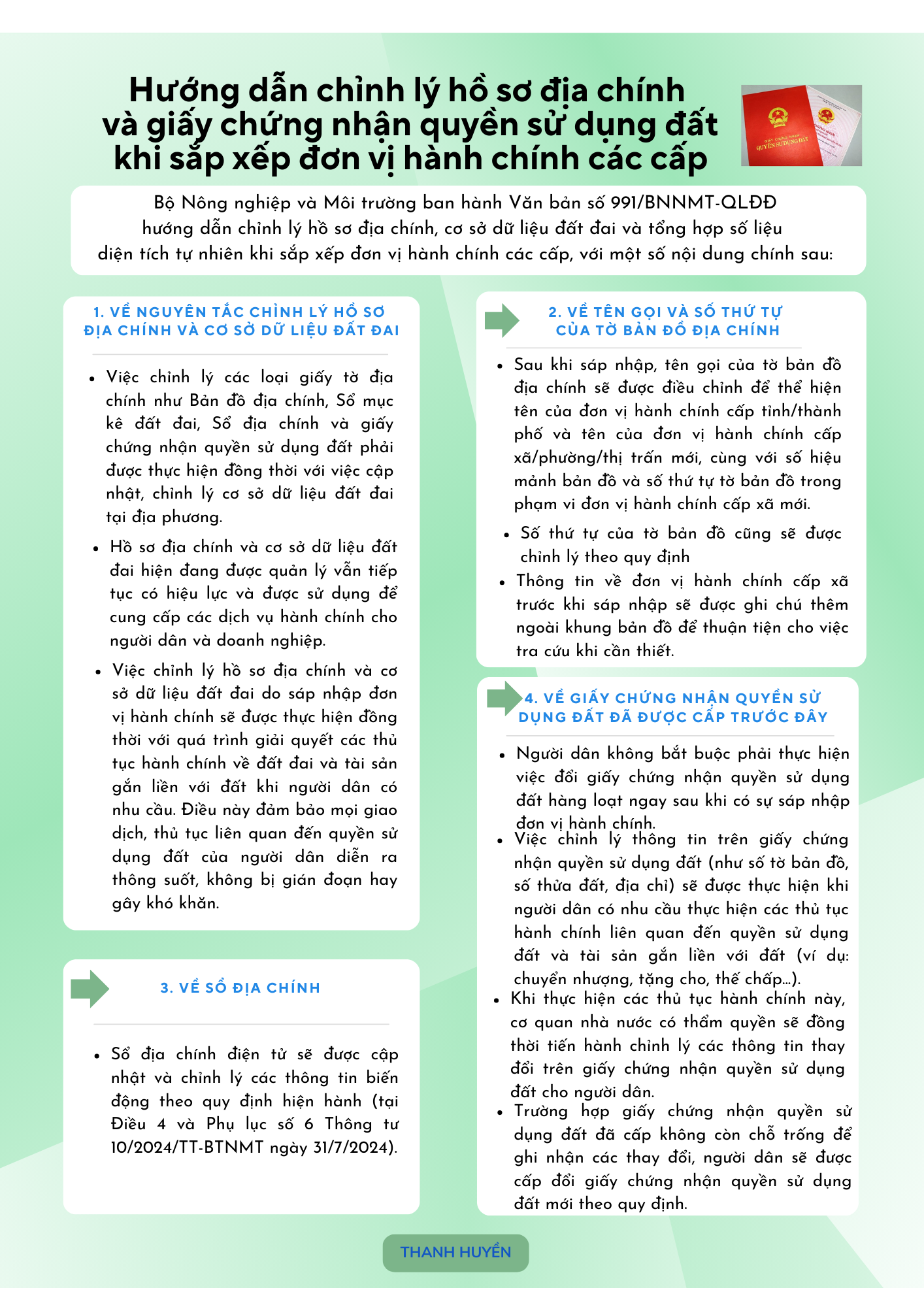 Hướng dẫn chỉnh lý hồ sơ địa chính và giấy chứng nhận quyền sử dụng đất khi sắp xếp đơn vị hành chính các cấp