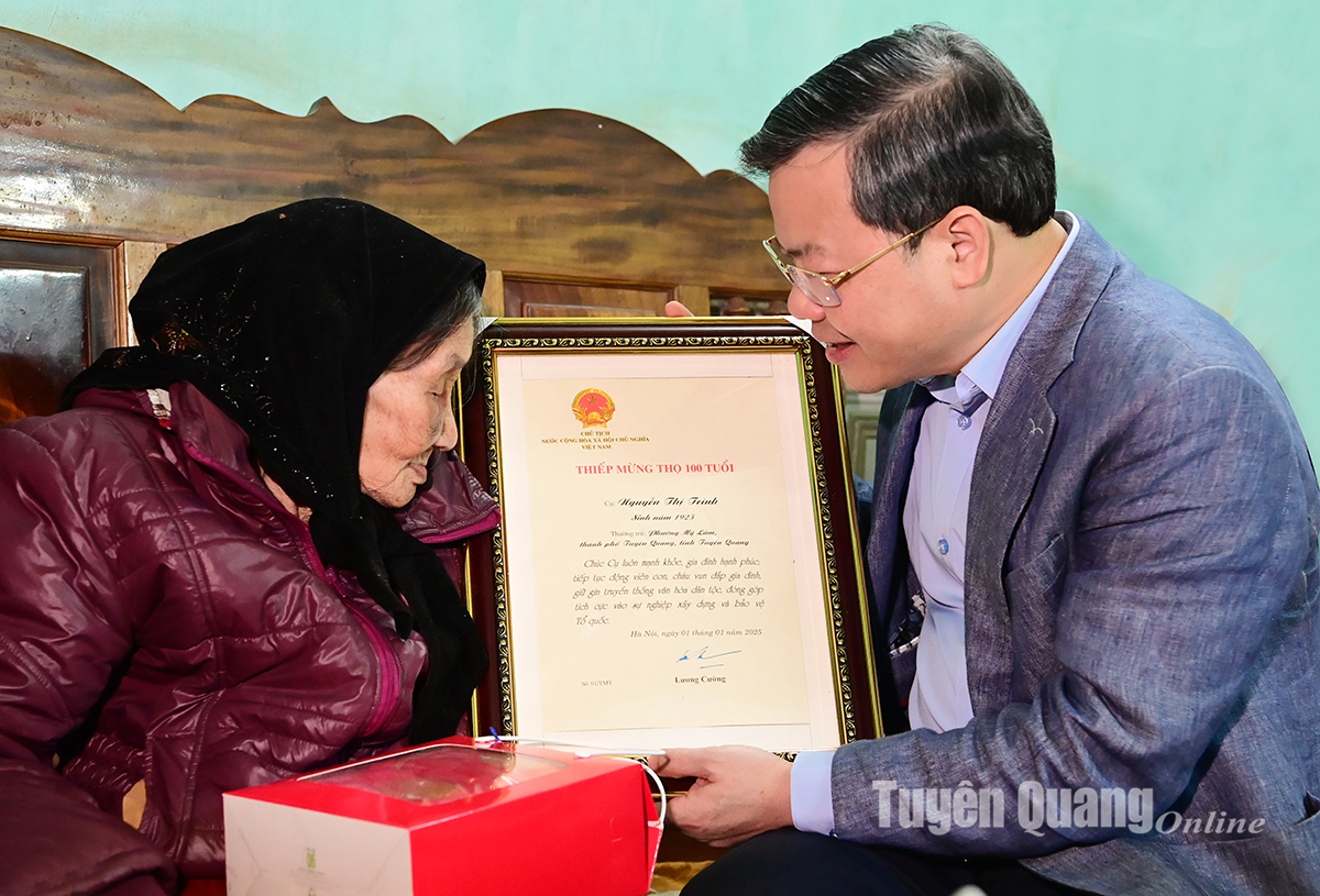 Nhân dịp kỷ niệm 80 năm Ngày thành lập Quân đội Nhân dân Việt Nam (22/12/1944 - 22/12/2024), 35 năm Ngày hội Quốc phòng toàn dân (22/12/1989 - 22/12/2024), chiều 17-12, đồng chí Nguyễn Văn Sơn, Phó Bí thư Tỉnh ủy, Chủ tịch UBND tỉnh đã thăm, tặng quà người có công trên địa bàn thành phố Tuyên Quang. Cùng đi có lãnh đạo Bộ CHQS tỉnh, Sở Lao động – Thương binh và Xã hội, UBND thành phố Tuyên Quang.
