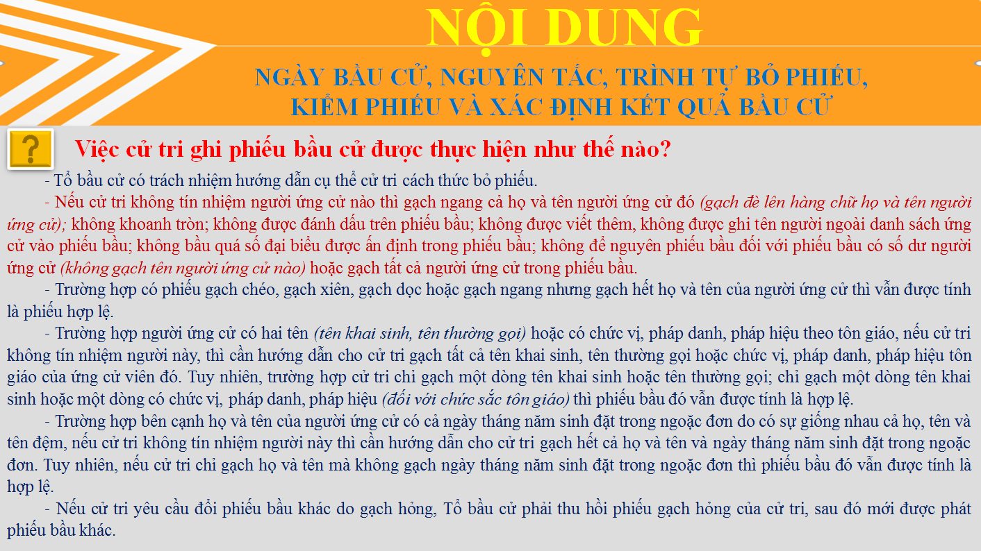 Ngày bầu cử đại biểu Quốc hội khóa XV và đại biểu HĐND các cấp nhiệm kỳ 2021 - 2026 được ấn định là Chủ nhật ngày 23 tháng 5 năm 2021. Đến nay, công tác chuẩn bị cho cuộc bầu cử trên địa bàn tỉnh Tuyên Quang đã được triển khai thực hiện theo đúng yêu cầu quy định và tiến độ đề ra, sẵn sàng cho cuộc bầu cử diễn ra thật sự dân chủ, bình đẳng, đúng pháp luật, an toàn và tiết kiệm. Để tiếp tục phục vụ các tổ chức phụ trách bầu cử, cơ quan, tổ chức, đơn vị và cử tri nghiên cứu, tìm hiểu và thực hiện những nội dung của pháp luật về bầu cử đại biểu Quốc hội khóa XV và đại biểu Hội đồng nhân dân các cấp nhiệm kỳ 2021-2026. Ban Biên tập trân trọng giới thiệu nội dung tuyên truyền về Ngày bầu cử, nguyên tắc, trình tự bỏ phiếu, kiểm phiếu và xác định kết quả bầu cử.