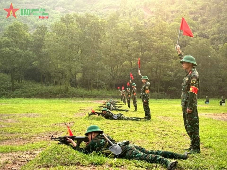 Tổ chức kiểm tra bắn súng tiểu liên AK bài 1 cho chiến sĩ mới ở Trường Quân sự Quân đoàn 12, năm 2024.