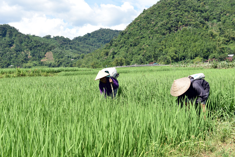 Người dân xã Côn Lôn (Na Hang) chăm sóc lúa mùa.