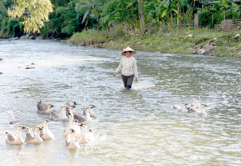 Tận dụng nguồn nước từ con suối Nậm Mường, người dân xã Côn Lôn (Na Hang) phát triển chăn nuôi ngỗng.