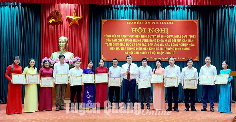 Sáng nay 9 -5, Huyện ủy Na Hang tổ chức Hội nghị tổng kết 10 năm thực hiện Nghị quyết số 29-NQ/TW ngày 04 – 11 – 2013 của Ban Chấp hành Trung ương Đảng về đổi mới căn bản, toàn diện giáo dục và đào tạo, đáp ứng yêu cầu công nghiệp hoá, hiện đại hoá trong điều kiện kinh tế thị trường định hướng xã hội chủ nghĩa và hội nhập quốc tế.