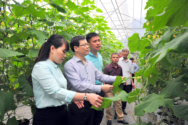 thăm mô hình trồng dưa công nghệ cao tại xã Kháng Nhật.    Ảnh K.T