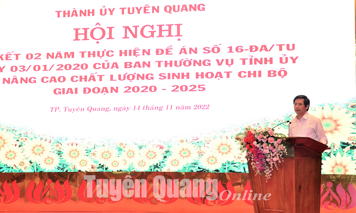 Sáng 14-11, Thành ủy Tuyên Quang đã tổ chức sơ kết 2 năm thực hiện Đề án số 16-ĐA/TU ngày 03-01-2020 của Ban Thường vụ Tỉnh ủy về nâng cao chất lượng sinh hoạt chi bộ giai đoạn 2020-2025.