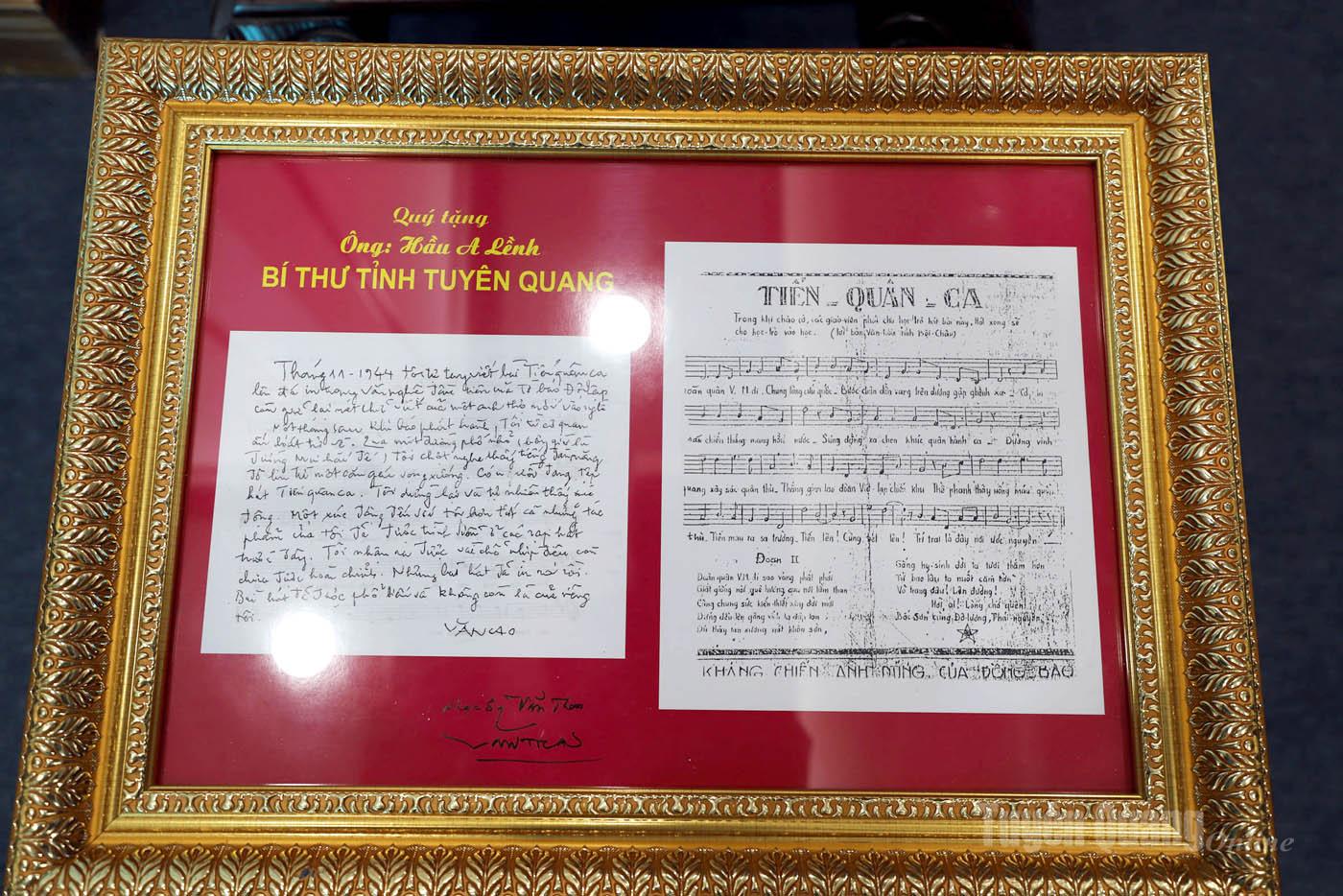Sáng 7-8, đồng chí Hầu A Lềnh, Ủy viên BCH Trung ương Đảng, Bí thư Tỉnh ủy Tuyên Quang đã tiếp nhận Bút tích bài hát “Tiến quân ca – Quốc ca Việt Nam” do ông Văn Thao, con trai cố Nhạc sĩ Văn Cao trao tặng.