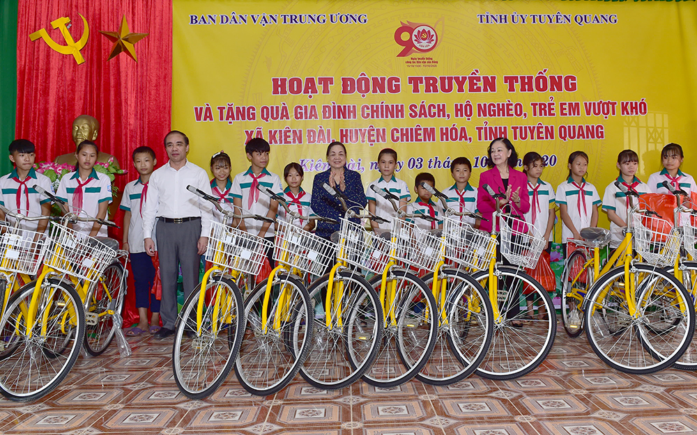 Ngày 3-10, Đoàn công tác Ban Dân vận Trung ương do đồng chí Trương Thị Mai, Ủy viên Bộ Chính trị, Bí thư Trung ương Đảng, Trưởng ban Dân vận Trung ương làm Trưởng đoàn đã tổ chức hoạt động truyền thống tại xã Kiên Đài (Chiêm Hóa) nhân dịp kỷ niệm 90 năm Ngày truyền thống công tác Dân vận của Đảng (15-10-1930 - 15-10-2020).