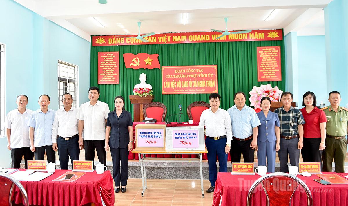 Đồng chí Lê Thị Kim Dung và đoàn công tác tặng quà xã Nghĩa Thuận.