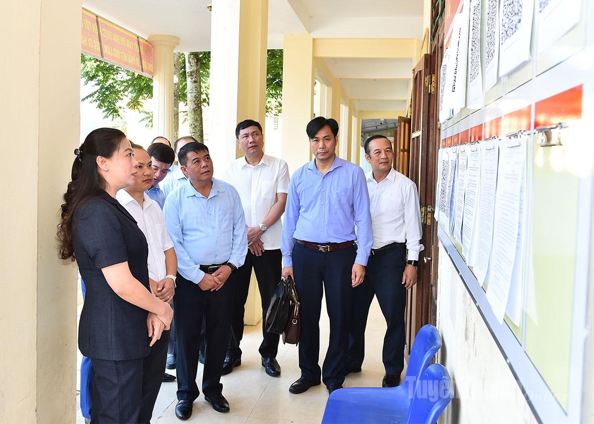 Đồng chí Phó Bí thư Thường trực Tỉnh ủy kiểm tra việc niêm yết TTHC bằng mã QR Code tại xã Nghĩa Thuận.