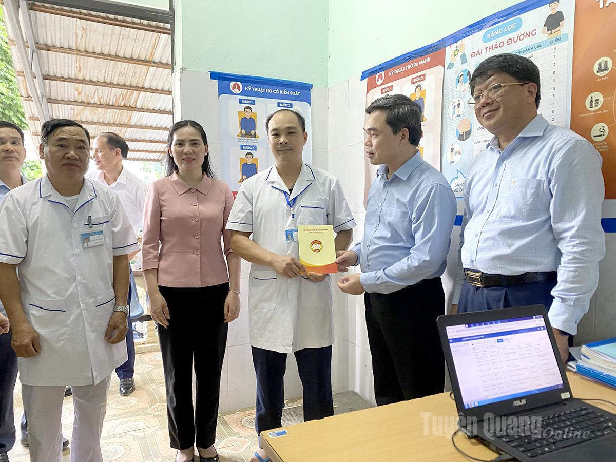| Đoàn công tác tham quan cơ cơ sở vật chất và tặng quà Trạm Y tế xã Ngọc Long. |