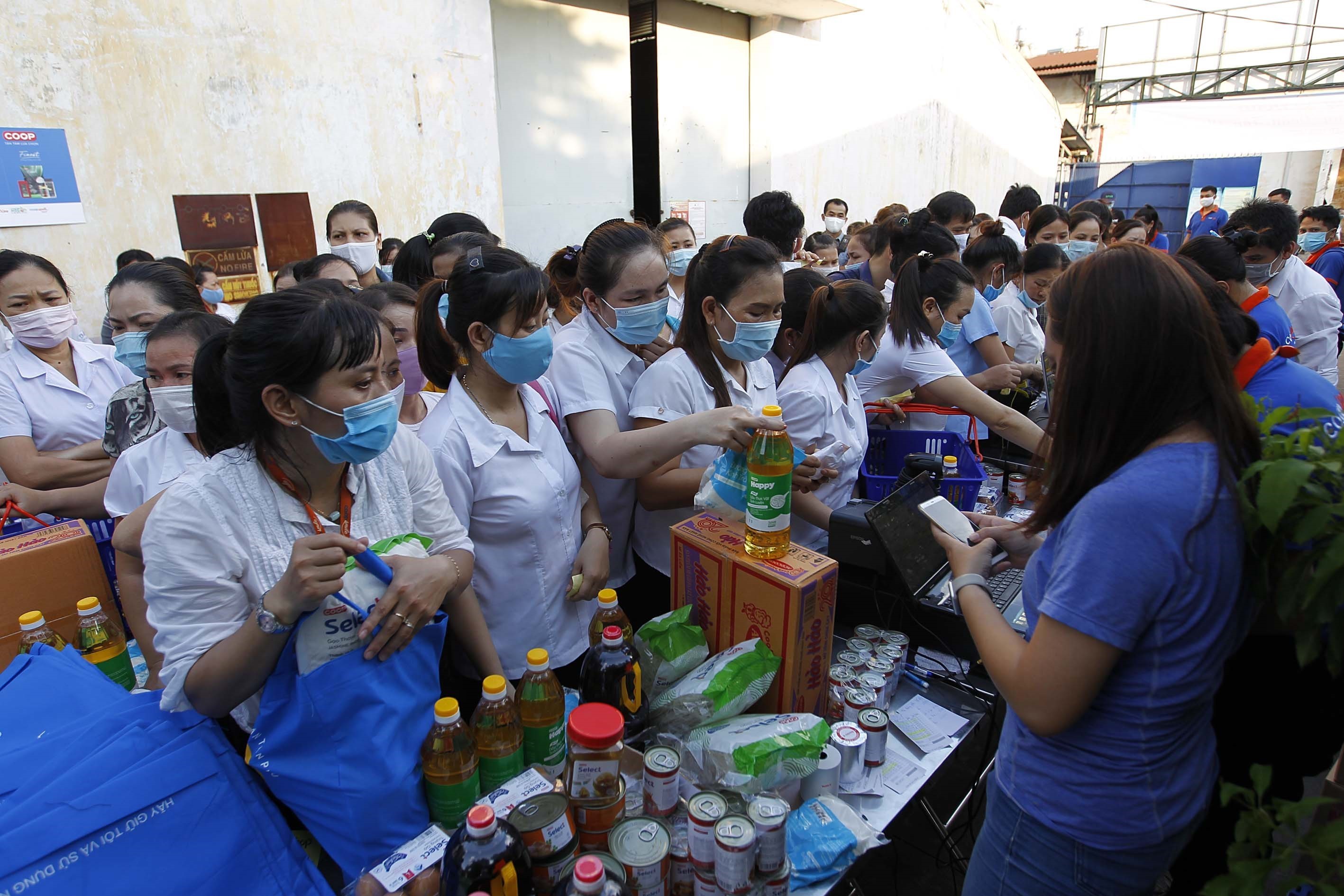 Phiên chợ 0 đồng phục vụ công nhân có hoàn cảnh khó khăn bị ảnh hưởng bởi dịch COVID-19 tại quận Tân Phú, Thành phố Hồ Chí Minh_Ảnh: TTXVN