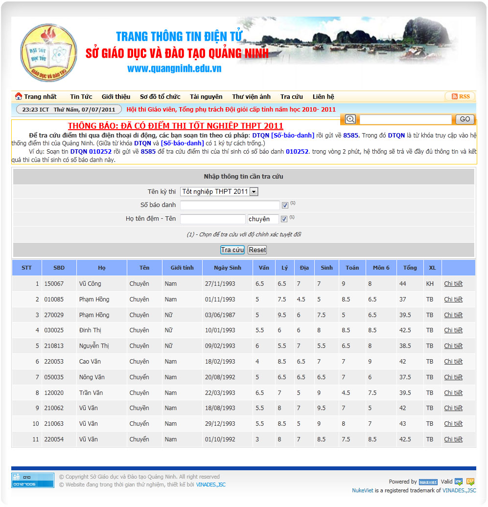 - Giao diện đơn giản, dễ sử dụng: Người dùng chỉ cần nhập thông tin cơ bản như số báo danh hoặc mã học sinh để nhận kết quả ngay lập tức.